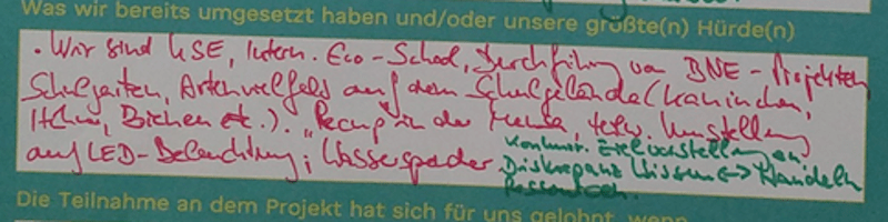 Unser Bemühen ist es, den Verbrauch verschiedenster Ressourcen um mindestens 20% zu reduzieren. Dieses an sich einfache Anliegen stellt uns vor eine ganze Reihe von Herausforderungen: Zum einen ist die Erfassung selbst der Ist-Zustände nicht immer einfach, die Bewertung von Maßnahmen ist nicht einfach [es gibt z.B. an der Schule keine Stromzähler, der Verbrauch wird„Ressourcenreduktion“ weiterlesen
